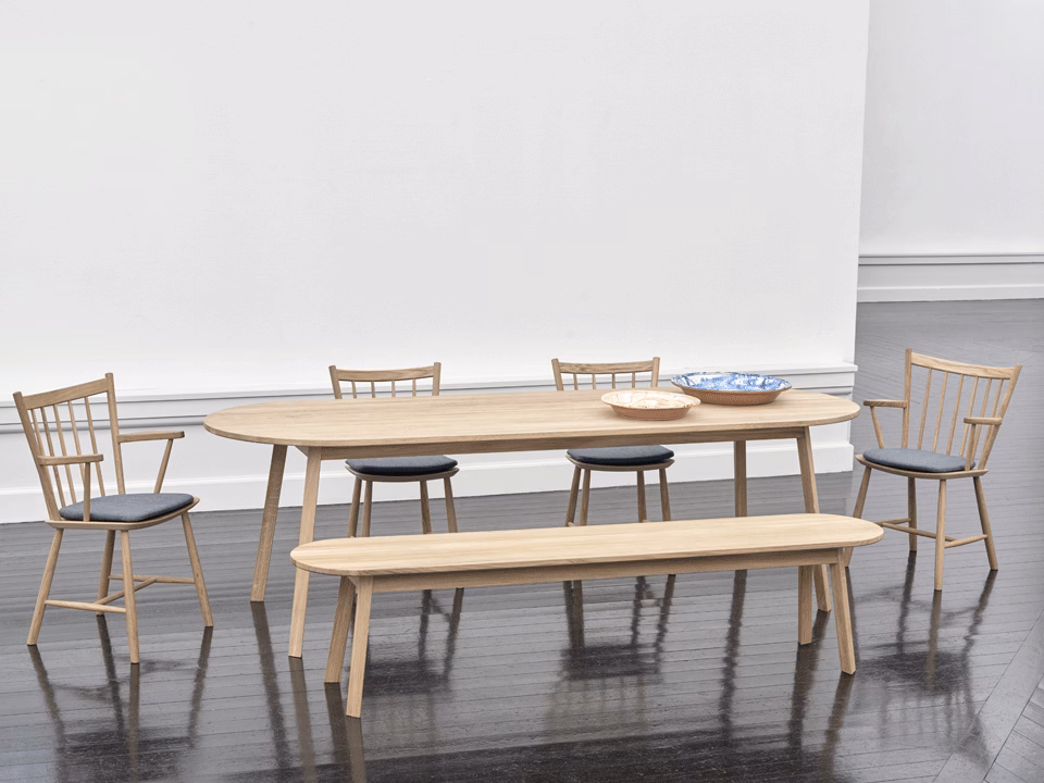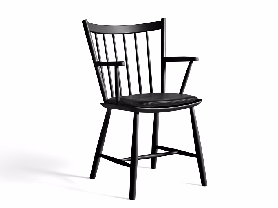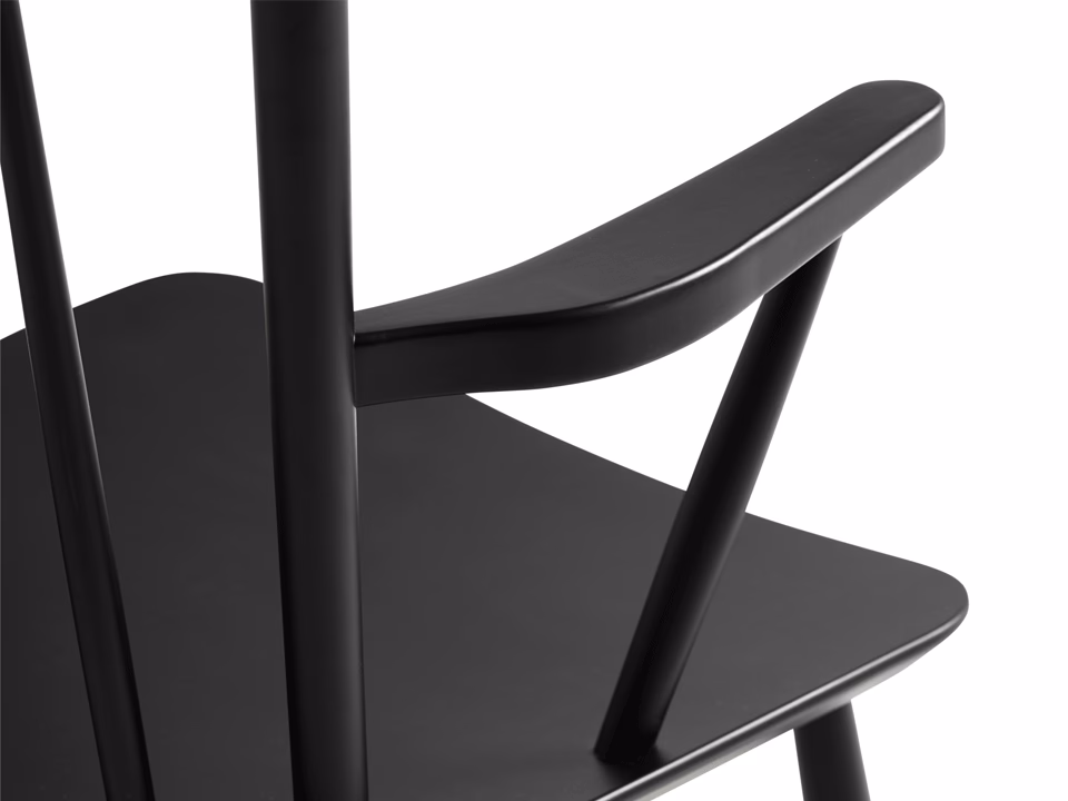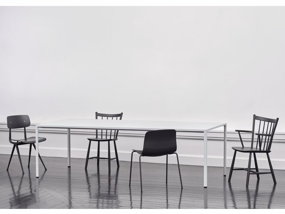 HAY’s reproduction of Børge Mogensen’s classic J42 chair clearly reflects his design philosophy. Precise proportions with simple horizontal and vertical lines are used to construct a curved spindled backrest and angular armrests. With a broad plywood seat and frame in solid oak or beech, the design has a timeless quality that is built to provide lasting comfort. Available in oiled, matt lacquered or painted finishes.