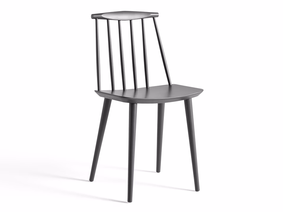 Folke Pålsson’s J77 dining chair has a wide seat and curved spindle back for optimal comfort, while the slightly conical legs create extra stability. HAY’s relaunched version is crafted in solid beech with a natural finish or choice of different lacquers.