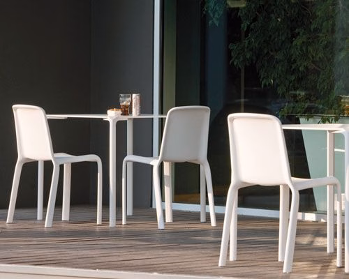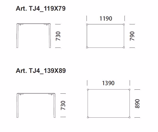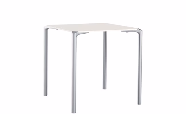 Stackable, extruded aluminium four legs available in white or black powder coated finish, to be fixed to the top thanks to the die-casted aluminium plates in the same colour of the legs.