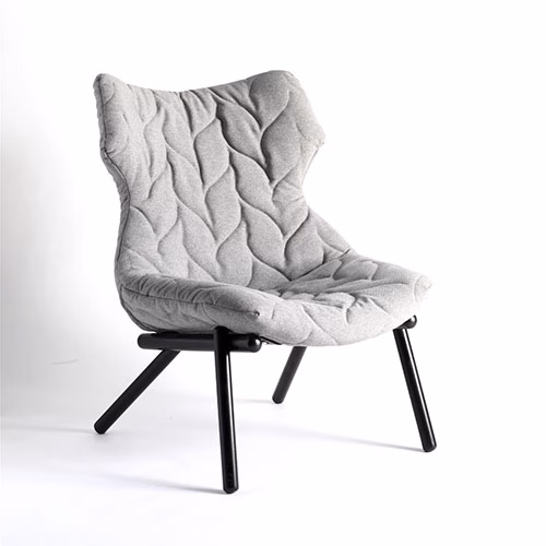 A dialogue between natural and artificial reality, Foliage is a family of chairs created specifically for residential use and bears the clear graphic hallmark of Patricia Urquiola. A series of pieces that look as if they grew just naturally in plastic where the leaves form a crown resting on a framework of branches which virtually form a seat. This two-seater sofa presented in 2011 and full of personality features a soft seat with topstitched embroidery and is now joined by a smaller cosy armchair. The topstitching covers the entire surface including the back to make the most of the aesthetic effect and can be placed anywhere in the living room and appreciated from any angle.