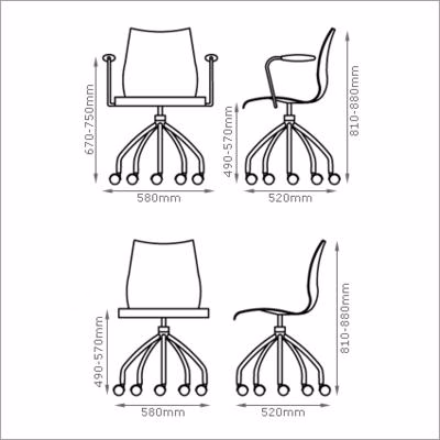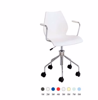 Stylish and value for money office version of the Maui chair. With armrests and gas-lift swivel base on castors.