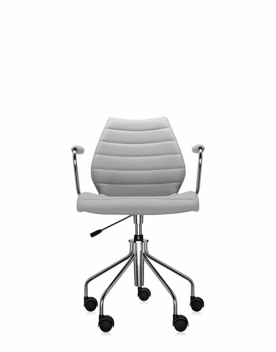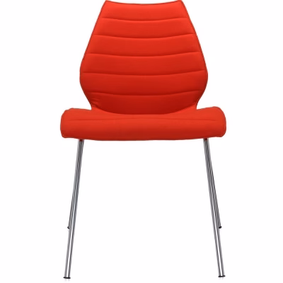 The highly practical Maui Soft Dining Chair is the fabric covered version of the original Maui Chair. It further establishes Maui as a firm favourite for domestic and commercial environments. Initially designed in the mid nineties, Maui was the first of its kind from Kartell to incorporate no ribbing, tracery, metal supports or reinforcements to sustain the back. Maui differed using its pioneering construction and engineering philosophy, of a single mould, for strength and aesthetics.Maui Soft is a tribute to Vico Magistretti, developed and upholstered in Kvadrat Divina 3 fabric which offers a uniform block colour. Soft to the touch, with a felt like appearance, Divina 3 is hardwearing and highly functional.