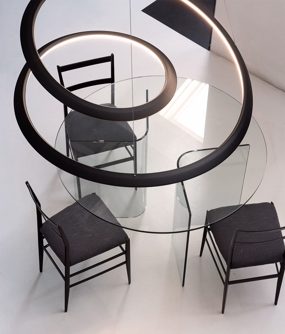 The structure is a painted aluminum extrusion, whose continuous line is made through a three-dimensional machining process engineered by Nemo and designed on the basis of the geometric principle of the Moebius strip.