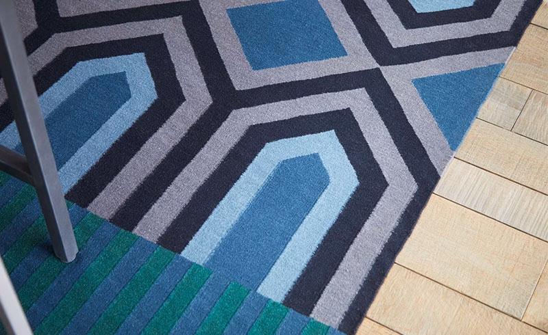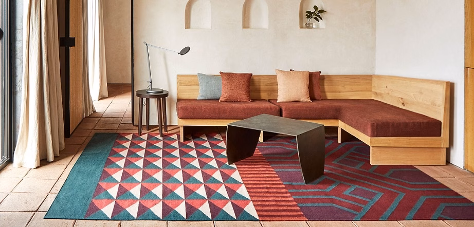 The Ndebele rugs are inspired by the culture of the African Ndebele people, known for their colorful facades. These are traditionally painted by women, who decorate their houses with murals of geometric motifs and bright colors.