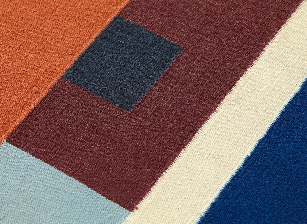 ZOE is the result of the first collaboration between Daria Zinovatnaya and GAN. The series expresses, in the purest way, the importance of shape and color for the Ukrainian designer. Her creations flow on a blank canvas in which textures, geometry and color planes are combined. SOOL, one of the two rugs that make up the collection, is made using the kilim technique, an ancient method that produces flat and light rugs thanks to the weft of wool fibers that cover the thread warp.