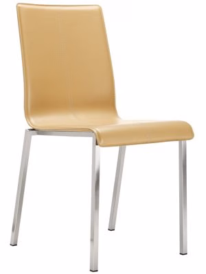 Kuadra chair, covered with genuine or regenerated leather with visible stitches.