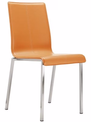 | Kuadra chair, covered with genuine or regenerated leather with visible stitches.