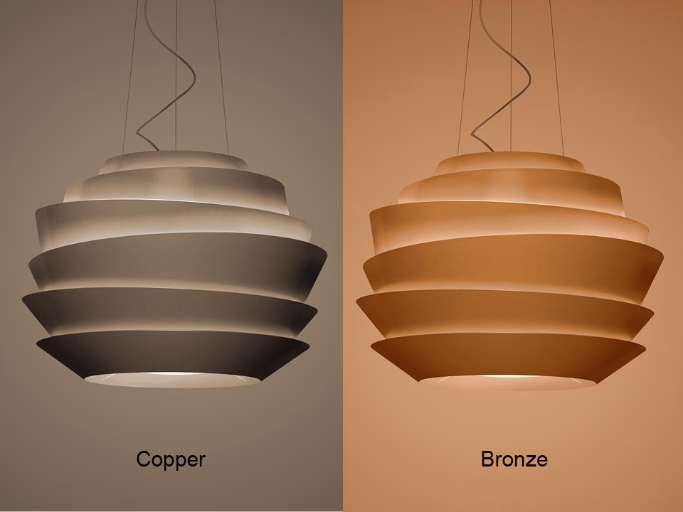 Suspended architecture that recalls the outline of the Guggenheim Museum in New York: this is the first impression of Le Soleil suspension lamp, a luminous sphere made up of irregular bands that act like reflective surfaces inside and like a