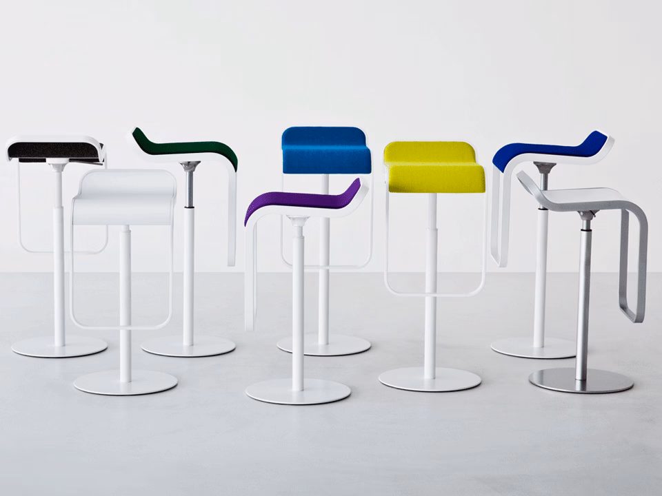 Slender and height-adjustable, LEM is the iconic stool par excellence. In an entirely painted version, its functional structure combines with the formal elegance of black or white.