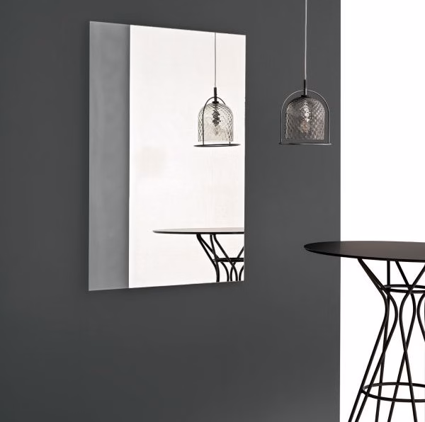 Ceiling light with chromed celiling pink and transparent cable. Laquered metal frame. Hand floating glass.