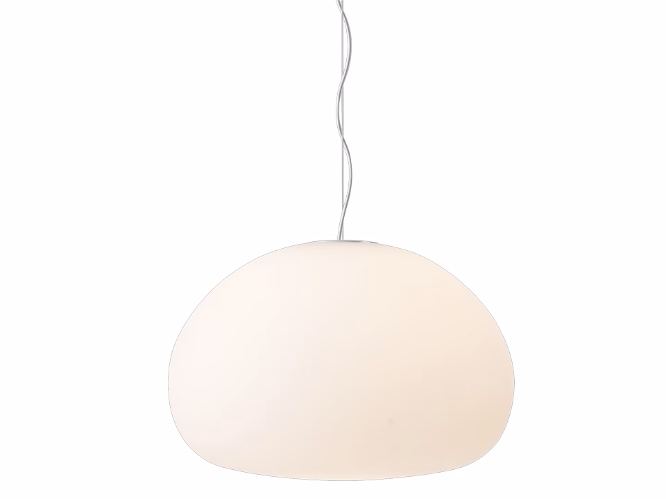 The pendant is inspired by a resting drop of water. The organic shape gives it a soft appearance which is enhanced by the frosted glass and the diffused light. The lamp can be hung alone or in clusters to create a dramatic effect.