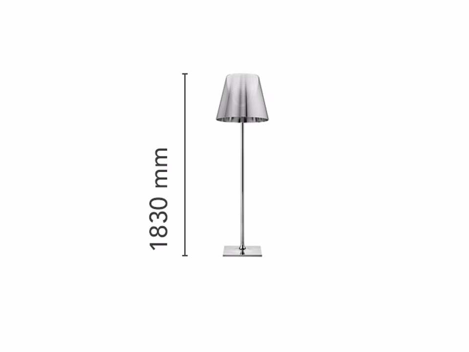 Floor lamp providing diffused lighting. Base, rod support and diffuser support in die-cast, polished and chrome-plated Zamak alloy. Galvanized P04 steel base cover. Injectionmolded PC (polycarbonate) opal inner diffuser and support for the lamp-holder.
