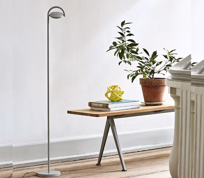 Design duo kaschkasch have created a family of table and floor lamps sharing the same arched silhouette. The light source comes from a tilting circular disc, which can be adjusted to create both an indirect ambient and direct task light beam. The lamp body is crafted from powder coated die cast aluminium and steel, and the light source is an injection moulded polycarbonate opalescent lens that conceals a flat panel of light. Both lamp designs are available in different colours and are suitable for a variety of private and corporate settings.