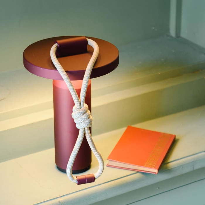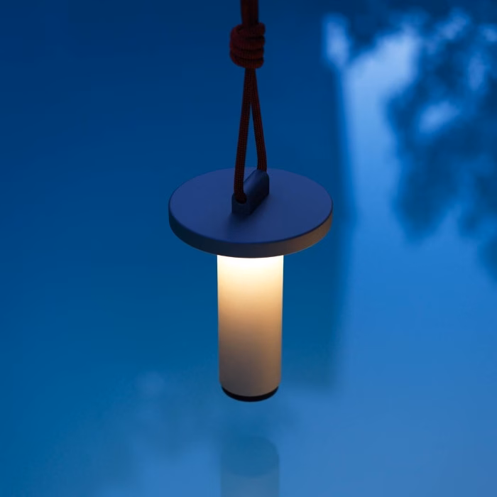 The portable lamp is also equipped with a solid polyester rope, which is both mould-proof and UV-resistant. It can therefore be hung outdoors in a tree or from a pergola. These features make Quasar a truly versatile lamp.