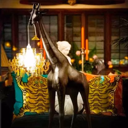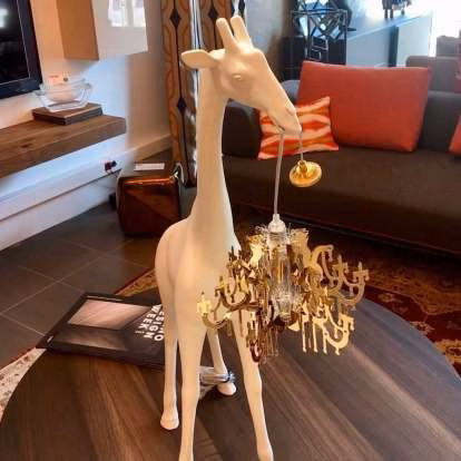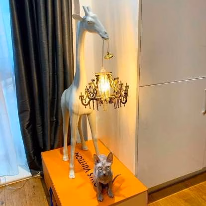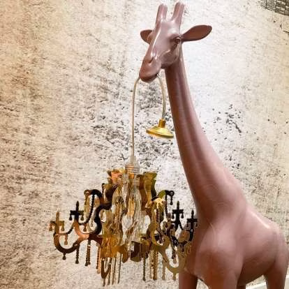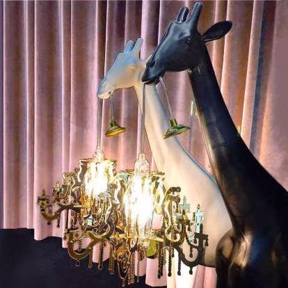 Giraffe In Love XS, designed by Marcantonio, is a giraffe that holds a Marie-Thérèse style chandelier, in the miniature version. The lamp becomes a versatile and playful design object that will fulfill keep away any stress from your desk.