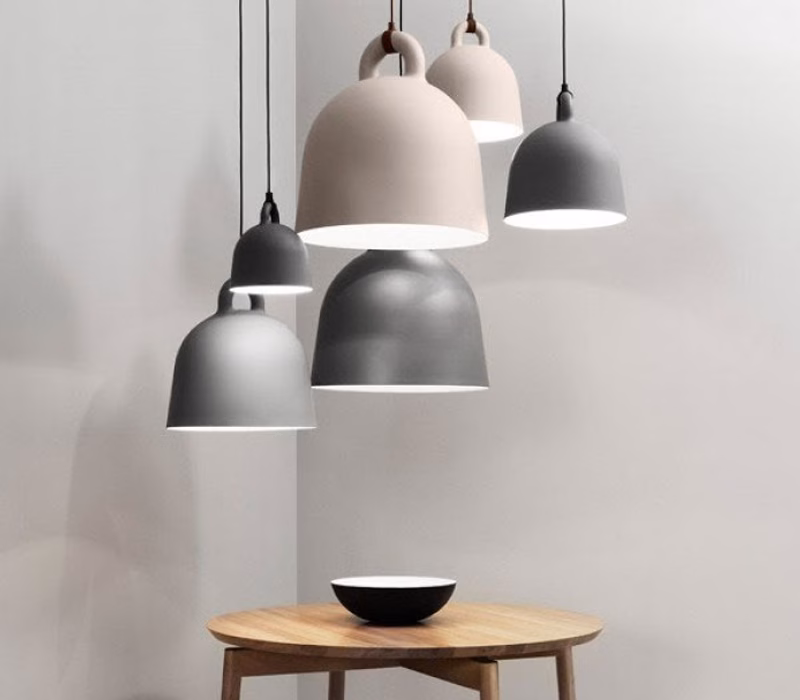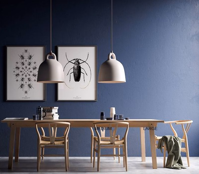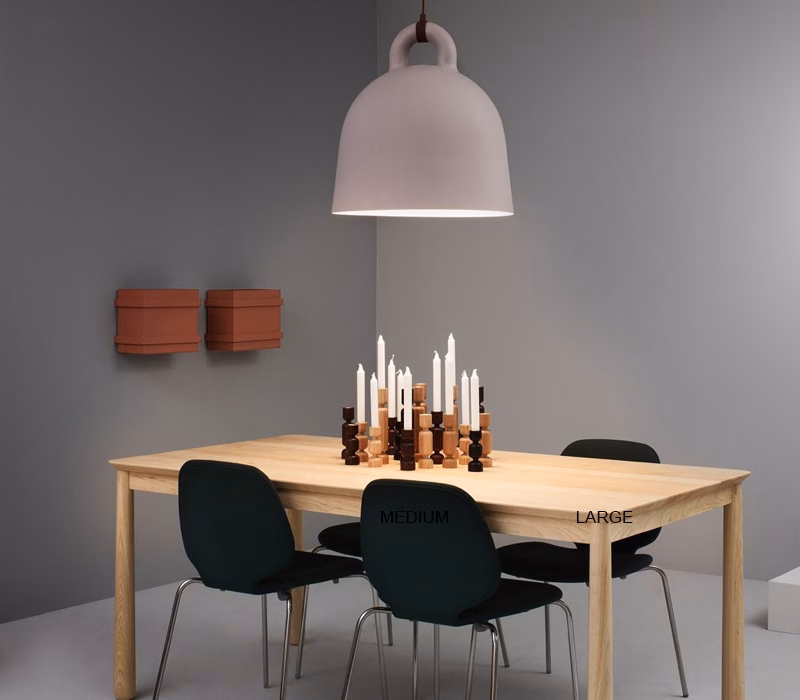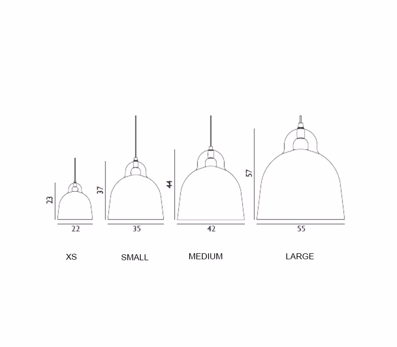 Bell Lamp in White and Black version have matching cords and canopies. Bell Lamp Sand has a brown cord and white canopy. Bell Lamp Grey has a black cord and canopy. Delivered with 4 m textile cord.