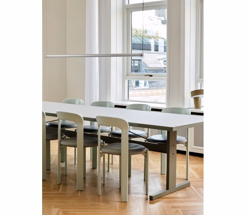 Factor Linear Suspension is an innovative lamp concept created by Swiss designer Dimitri Bähler. Featuring a tubular design with a rotatable core element that can be positioned to provide 360 degrees of infinite movement, it enables users to create a personalised lit environment with either direct or indirect light. Constructed with easy-to-assemble components, it offers a simple plug-and-play lighting solution that requires no tools for assembly and adjustment. Made from extruded aluminium, the lamp features a dimmable integrated LED light source and is available in different colour options, in both wet sprayed and anodised finishes. Factor is available in two variants depending on the user’s needs – one offering a warmer, diffused light output that can be used to create ambience above a dining table, over a kitchen island or in a home office – and another that provides a cooler, more focused light that is well suited to offices, public buildings and other professional areas requiring a more task-oriented lighting solution, offering superb colour rendering and glare prevention, thanks to the custom glare control louver concealed inside the lamp.