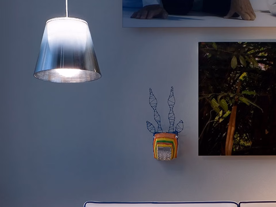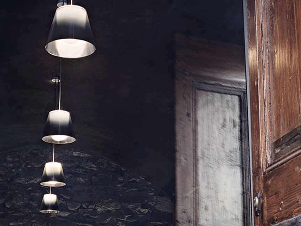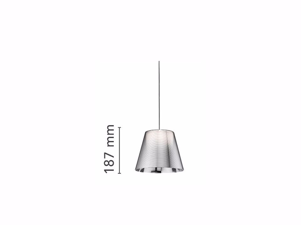 Suspension lamp providing diffused light. PC (polycarbonate) inner diffuser, with opal white finish. Outer diffuser available in finishes: fumèe, made in PMMA (polymethylmethacrylate) or silver, made by vacuum aluminum coating on the inner surface.