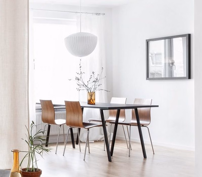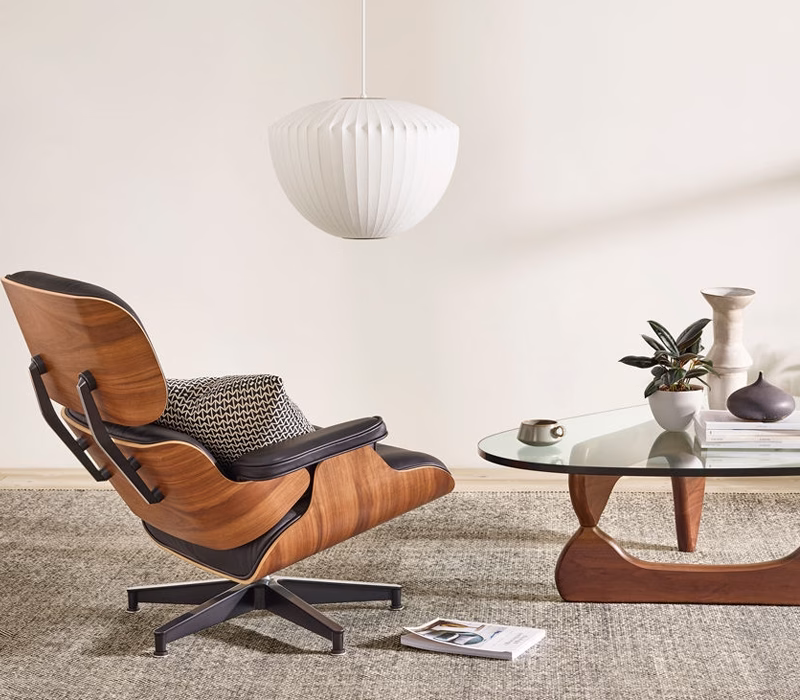 Part of the Nelson Bubble Lamp series, the Nelson Apple Bubble Pendant has a clean, rounded symmetry. It comes with a steel ceiling plate, from where it floats overhead, casting a soft, even light. George Nelson designed the series in 1952. He was inspired by a set of silk-covered Swedish hanging lamps.