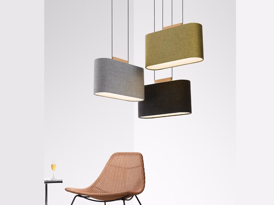 The Belmont Pendant Collection was a collaborative creation with designer Brad Ascalon re-envisioning the traditional fabric shade lamp but with the warmth and preciousness of hand crafted furniture. Belmont’s iconic, yet reductive form creates a natural canvas for displaying an exquisite array of textiles from premium wool to colourful woven fabrics that can be paired with a solid crafted oak wood armature. Belmont can be hung individually or in stunning groupings to provide warm and comfortable illumination to complement any residential, contract, or hospitality setting, also available in floor and table