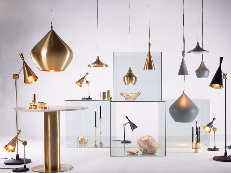 Bearing the mark of its maker, Beat is a celebration of the beauty of things created by hand. Hand-raised, welded, beaten and finally skimmed on a lathe, the Beat shades retain hammer marks from their forming. The collection includes Wall, Floor, Table and Ceiling lights.