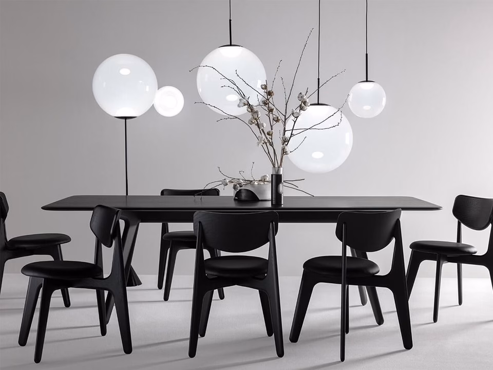 Globe is a large translucent ceiling light with a minimal matte black ceiling rose. Made using a high tech manufacturing technique in Germany and designed using our own recipe of opalescent polycarbonate, which results in a satisfyingly ethereal orb. Coupled with our new Tom Dixon LED, the shatter proof Globe pendant emits a soft, diffused and flattering light.