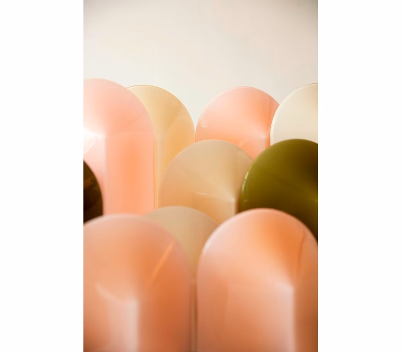 Inspired by the desire to create an ambient light source with a sculptural quality, Danish husband-and-wife designers Viola Heyn-Johnsen and Jonas Trampedach have created the Parade Lamp series. Consisting of a square base and arched top in coloured glass, the geometric shape causes the expression to change depending on whichever angle the lamp is turned. The carefully selected sizes and colours complement each other in height, tone and temperature, creating a cohesive effect that forms an interlinking pattern when multiple lamps are viewed together. Equally appealing as a collection of illuminating sculptures, a single light source on a bedside cabinet or displayed with other ornaments without the light switched on, Parade combines functionality with aesthetics to create a versatile and unique lamp. The custom, integrated LED light source, which can be replaced if required, has an inline step-dimmer that allows the light output to be adjusted to different settings.