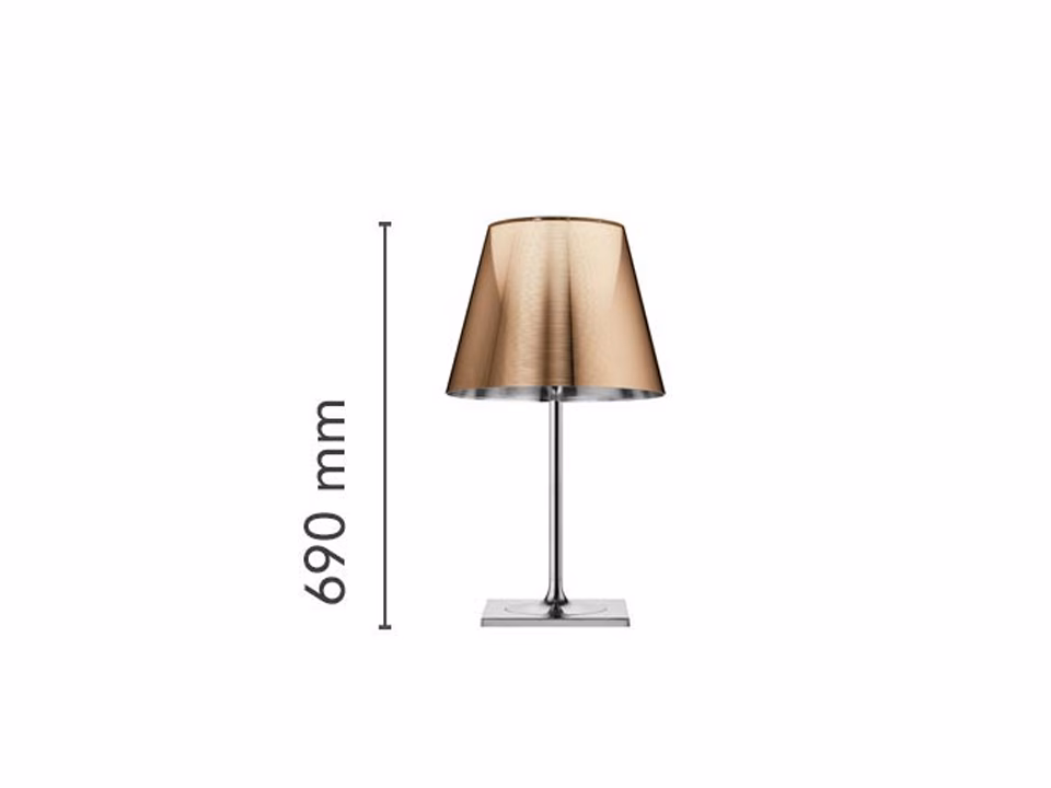 Table luminaire providing diffused lighting. Base, rod support and diffuser support in diecast, polished and chrome-plated Zamak alloy. Base cover in black injection-molded PA (Nylon). Injection-molded PC (polycarbonate) opal inner diffuser. Outer diffusers in transparent or fumèe PMMA (polymethylmethacrylate), and silver or bronze on the inner surface, by vacuum aluminum coatin