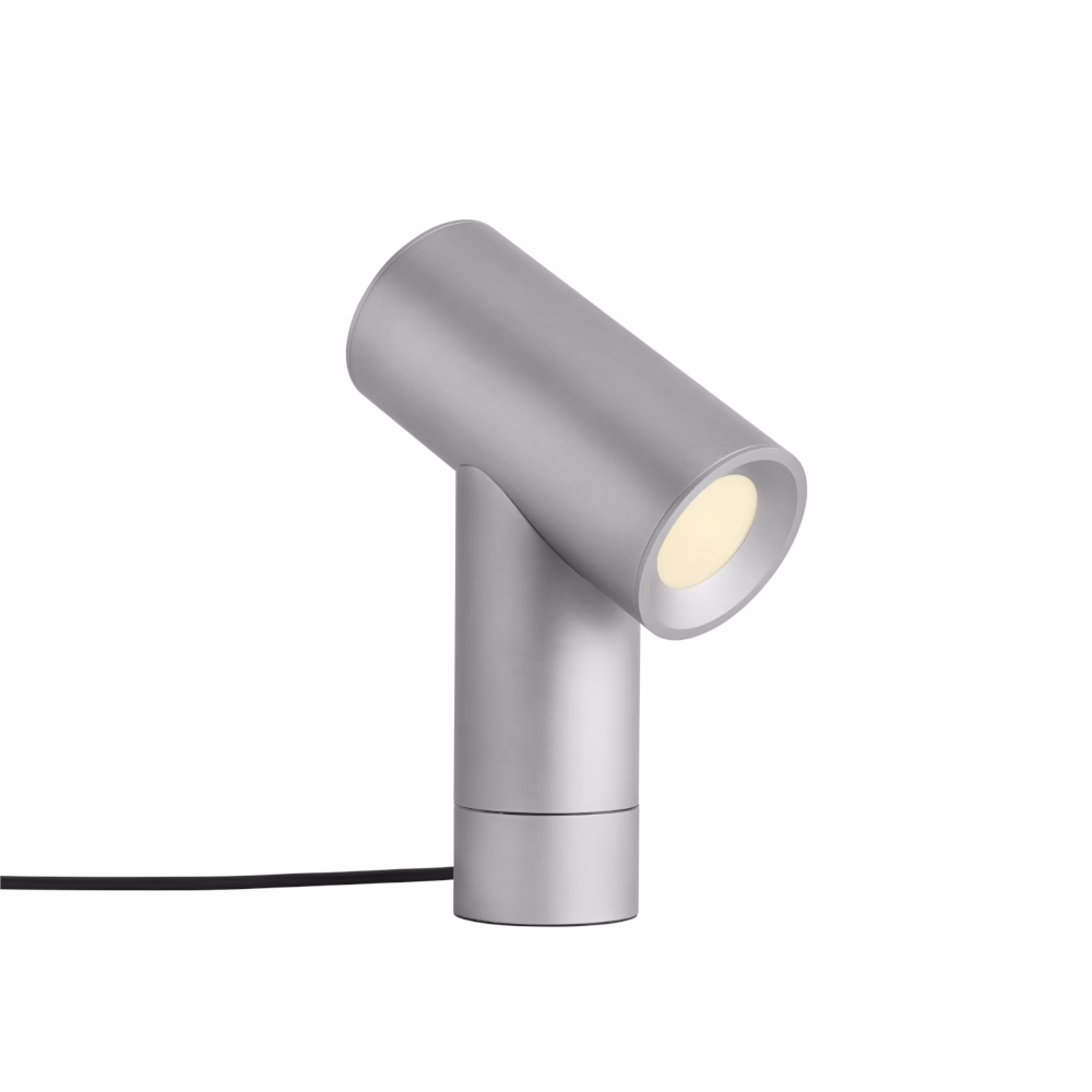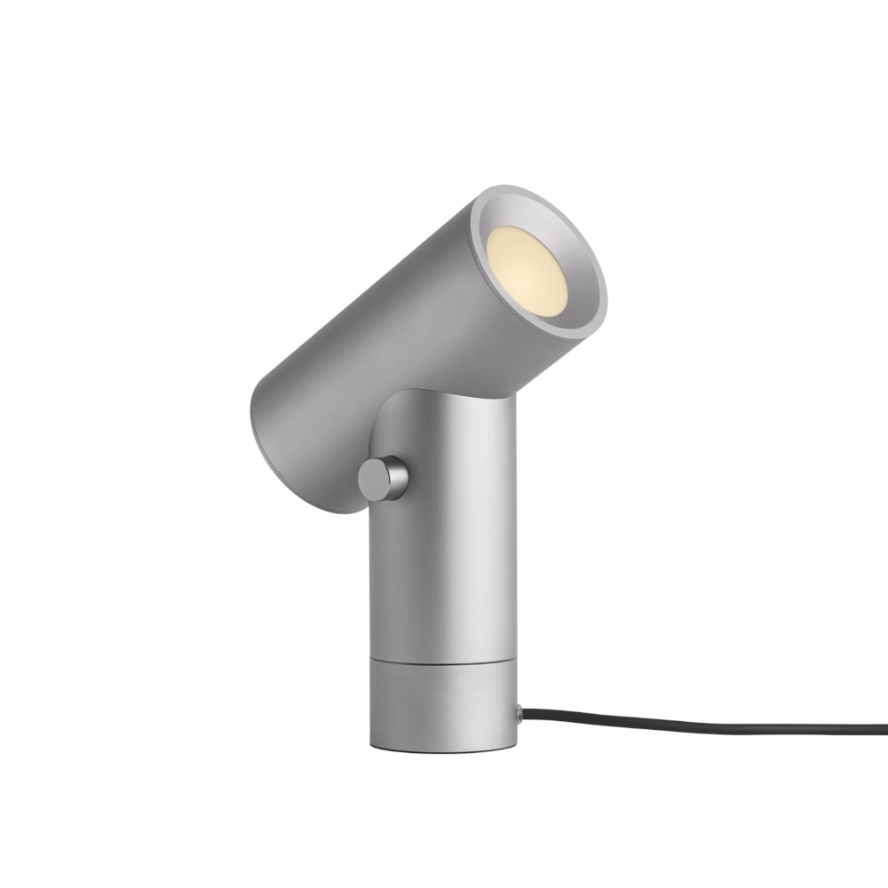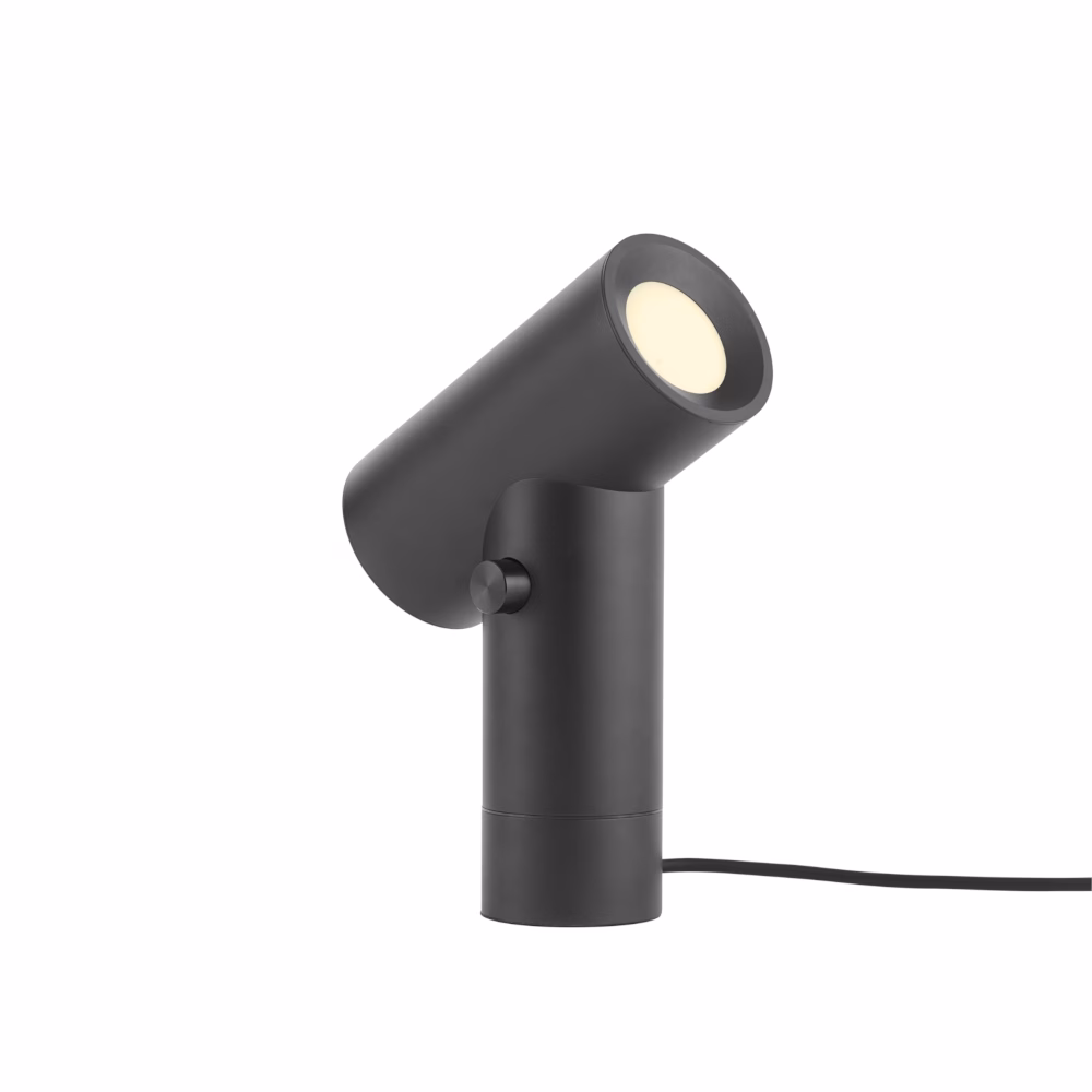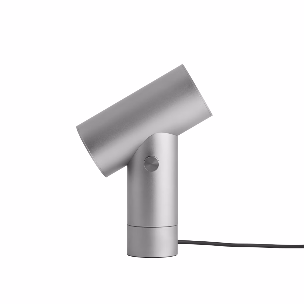 Beam Table Lamp is a versatile table lamp with a modern expression and intuitive user-friendliness. With light shone from both ends of a cylinder shape, the user can choose between three different volumes of light and gradually alter the volume of light emitted in each end through the turn of a playful dial. The Beam Table Lamp can be altered for any position with its rotating base and sleek body of anodized aluminum, whether it be as direct lighting or for an ambient glow in any home, offices, hotel room and educational areas.