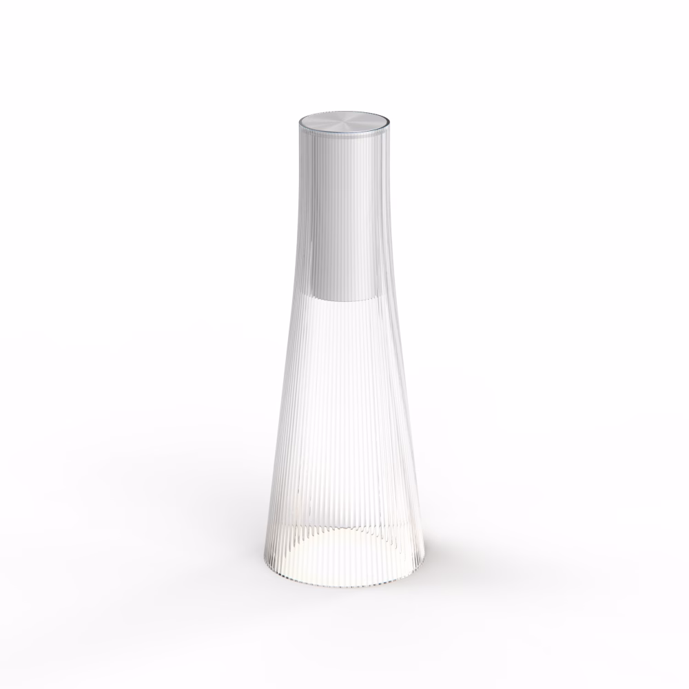 Inspired by a cone of light, Candél’s graceful vessel-like silhouette is in perfect harmony with its surroundings allowing the environment to filter through. Candél casts a warm, intimate candle-like glow that’s sure to seduce and become the central focus of any social gathering. Candél is a fully rechargeable portable LED light designed for both indoors and outdoors. Features a robust PMMA body in Clear or Bronze tint combined with a striking anodized aluminum light module that offers capacitive touch light control to provide up to 4 light levels to set the perfect ambiance. Battery life ranges from 10 to 150 hours depending on light intensity.