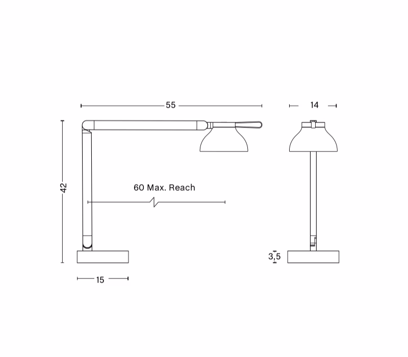 Pierre Charpin’s PC lamp series is a family of refined and precisely engineered multifunctional task lamps that can be used in a number of ways – free standing, desk, clamp and wall mounted. The lamp has a highly functional design featuring a polycarbonate head, aluminium arms and ABS base, with concealed gas springs that enable the arms and head to hold their position wherever they are moved