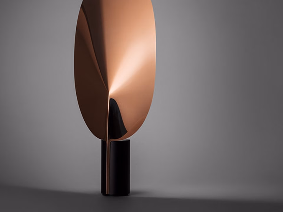 Adjustable table lamp providing indirect and reflected light. Extruded aluminium heatsink, photoengraved black PC cut-off, photoengraved optical PMMA diffuser. Reflector in sheared and folded pre-anodized aluminium.