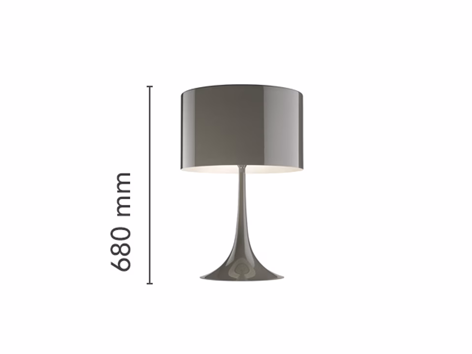 able/desk lamp providing diffused light. Spun metal frame and diffuser, die-cast aluminum diffuser support arms and lampholder support, painted in the colors indicated below. White, injection-molded polycarbonate diffuser supports. Sandblasted pressed glass upper diffuser screen. On the cable there is the electronic dimmer which allows the regulation of light brightness.