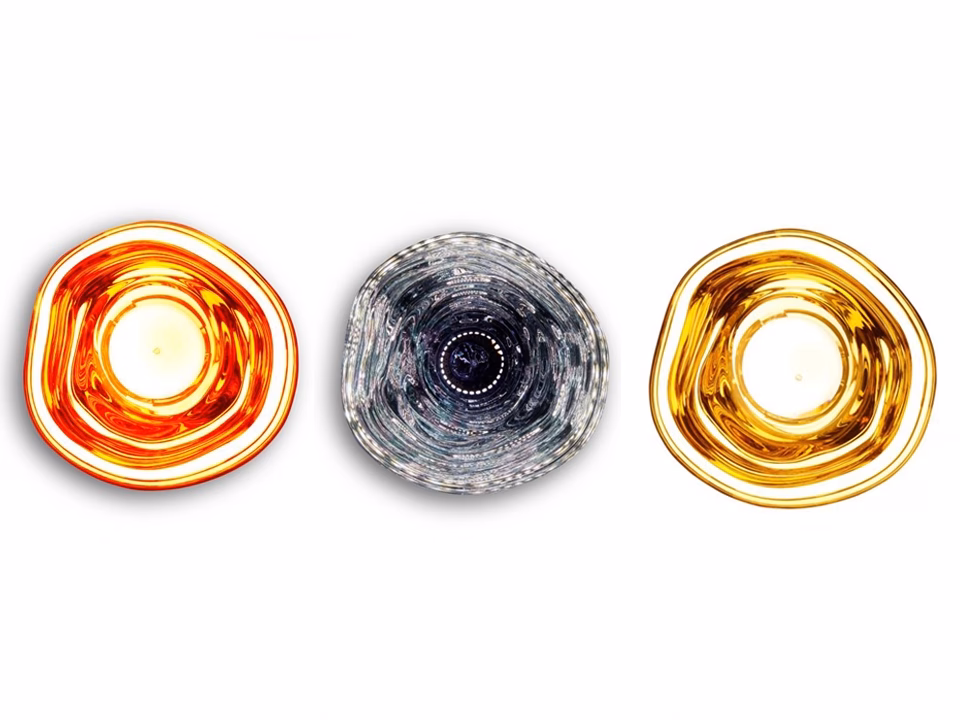 Melt Mini is a beautifully distorted small surface light in a multiple finishes. Featuring our integrated LED module, this Tom Dixon wall light creates a mesmerizing melting hot-blown glass effect when on and a mirror-finish effect when off. It is made in Germany using a high tech manufacturing technique to achieve a perfect melted orb.