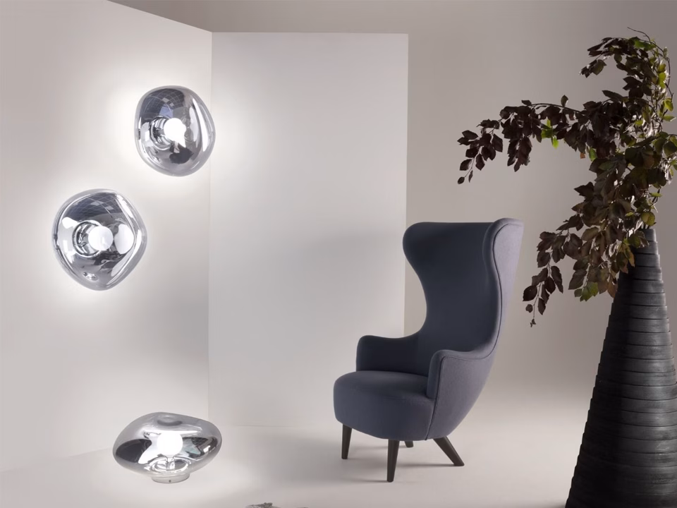 Melt is a beautifully distorted surface light in a modern Copper, Gold, Silver and Smoke finish. Featuring our integrated LED module, this Tom Dixon wall light creates a mesmerizing melting hot-blown glass effect when on and a mirror-finish effect when off. Made in Germany using a high tech manufacturing technique to achieve the perfect melted orb.
