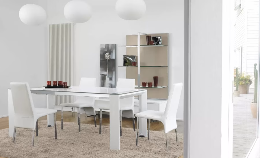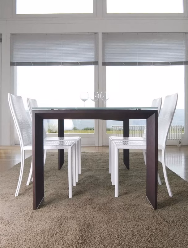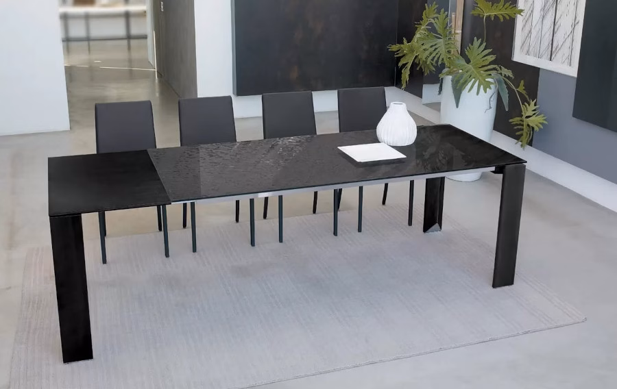 The Liko table is an extremely modern proposal characterized by the processing of the legs with a 45° cut. Equipped with a rigorous and linear aesthetic, the extendable table is equipped with a particular system that allows it to be opened easily