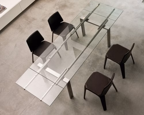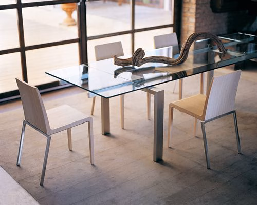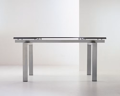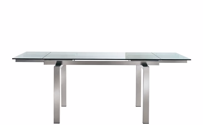 Magic extendible table with brushed stainless steel frame and 80 x 40mm section legs.