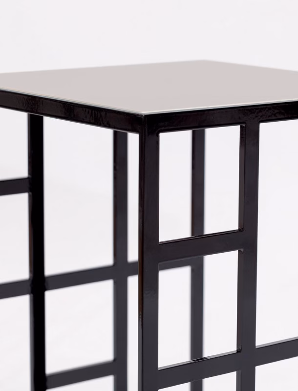 Coffee table with lacquered metal frame, top in glossy glass or velvet matt anti-scratch glass.
