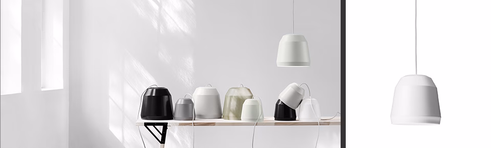 The idea with Mingus has been to create a simple, technologically uncomplicated pendant that shields modern low-energy light bulbs, provides good lighting and can be used for many purposes. The colour tones of the shade change in different light and take on the colour of their surroundings.