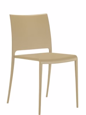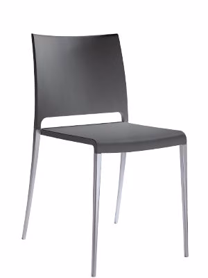 Chair with aluminium legs and polypropylene shell. Presented with shell and legs of same colour or in the version with coloured shell and aluminium legs.