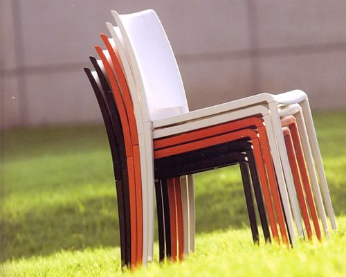Presented with shell and legs of same colour or in the version with coloured shell and aluminium legs. Light and stackable. Selected TOP TEN 2005 – Promosedia |