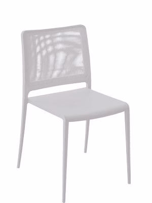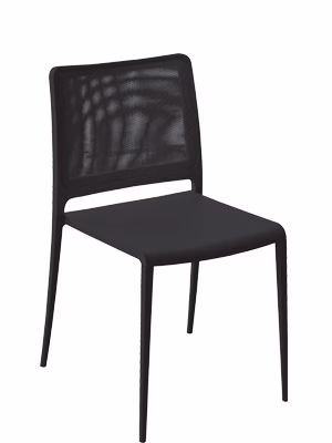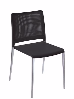 Mya Tecnica chair with polypropylene seat and mesh textilene back. Die-casted powder coated or polished aluminium legs suitable for outdoor use.