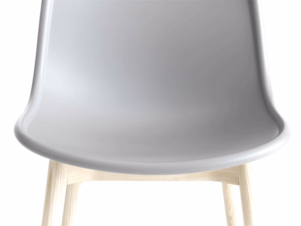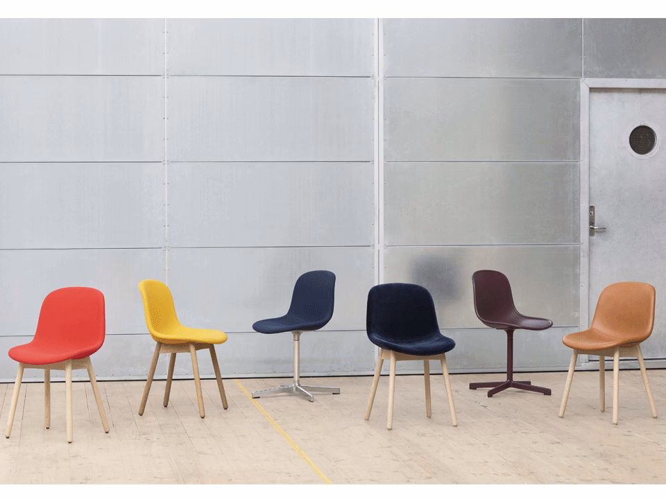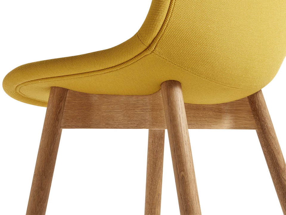 Neu’s ergonomically moulded shell combined with its round solid wooden legs results in a perfectly defined profile. The durable, finely-grained plastic adds textural interest, while the rim detail gives the design structure and character. In the upholstered version a delicate stitching line runs across the seat, while a piping detail accentuates the chairs raised rim. Its robust and comfortable construction and flexible design options makes it the perfect choice for offices or dining rooms.