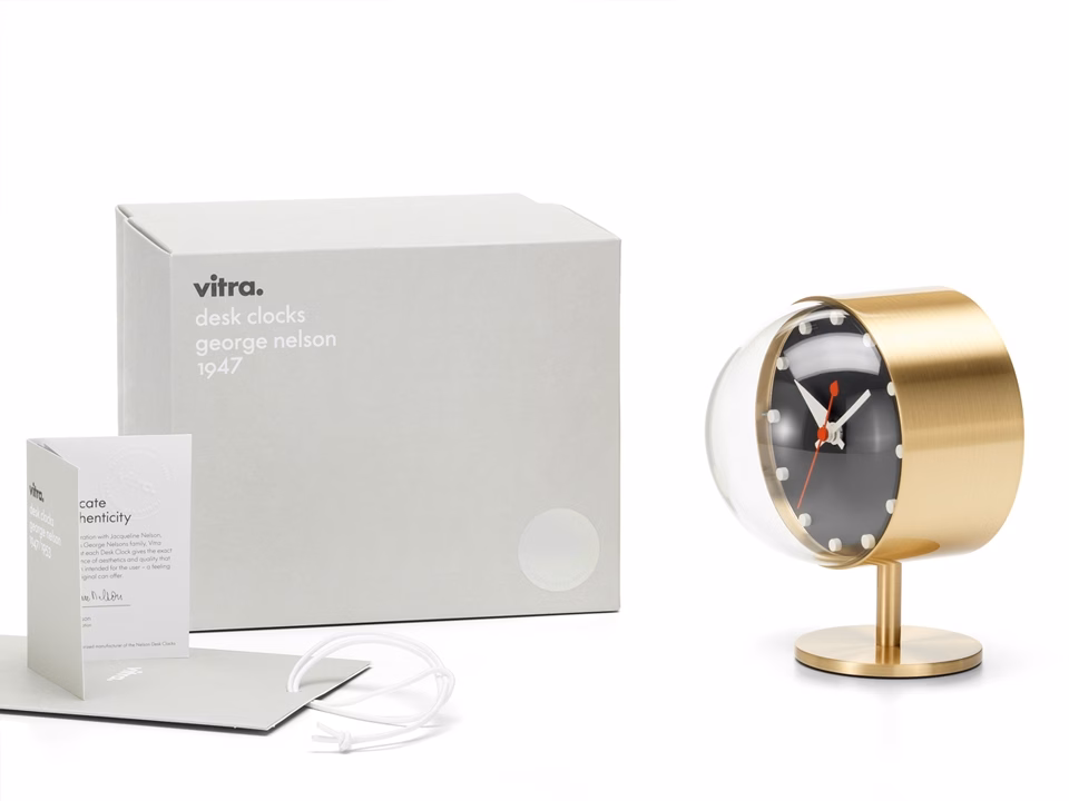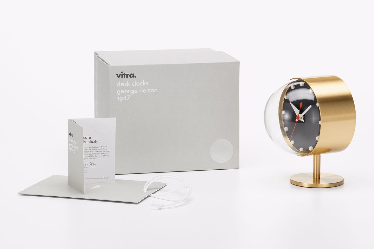 The many home accessories created by George Nelson include a variety of table clocks. Representing a selection of these classic designs, the Desk Clocks offer a refreshing alternative to conventional clocks. Equipped with high-quality quartz movements, the charm of these decorative timepieces is equalled by their precision