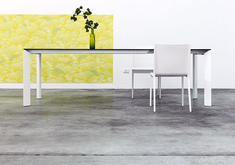 The top is extremely slim and light, but also highly resistant, thanks to the materials used: Alucompact® laminate, back-painted glass and Alucompact® extensions. The structure and top are available in an infinite choice of combinations to meet all tastes and requirements. Sizes: |