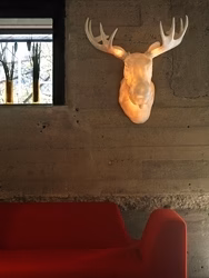 Moo is a full scale wall-mounted Norwegian light moose head. Moo may be used both for indoor and outdoor decoration purposes.