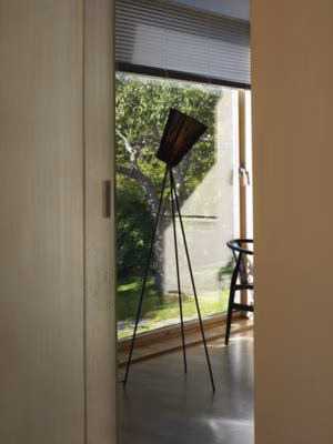 Oslo Wood is a studio lamp with a tripod base. The shade includes a revolving shade piece, which gives the possibility of exciting angles of light in the room. The lamp gives an upward solid indirect lighting effect as well as a warm and diffuse direct light via the shade.