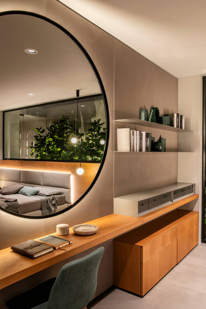 The Novamobili Astrid mirror stands out with its grand size and minimalist design, making it a central focal point of any space. Its sleek, round shape and expansive surface not only reflect light beautifully but also create an illusion of more space, making it an ideal addition to smaller rooms or narrow hallways as well.