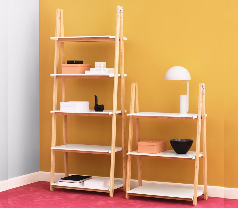 The One Step Up is a bookcase that combines form, material and function in a simple and chaste design. Francis Cayouette has been inspired by a simple ladder as object and he has created a new flexible piece of furniture ideal for storage. One Step Up creates room and frame for storage. Place various One Step Up bookcases beside each other and create your own bookcase system.