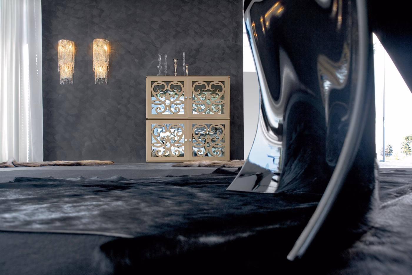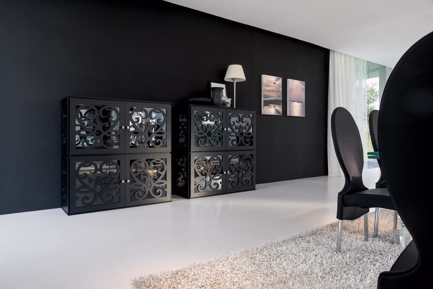 Colour-changing and luminous, just like the city it takes its name from, Paris is a system that reveals glass and wood’s discrete luxury, in a multitude of shapes: sideboards, TV stands, showcases, hanging units and shelves, composed in your preferred finishing. Lacquered wood storage unit in various sizes.